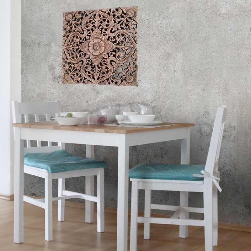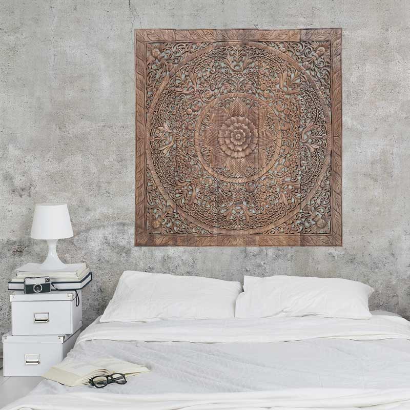 Das Mandala ist ein figurales oder geometrisches Bild, das im Hinduismus und Buddhismus in der Kultpraxis eine magische oder religiöse Bedeutung besitzt. Mandalas haben eine meditative Wirkung, weil sie Ruhe, Stärke und Harmonie ausstrahlen. Ein Mandala ist meist quadratisch oder kreisrund - stets auf einen Mittelpunkt orientiert. Ohne Anfang und ohne Ende stehen sie für Ewigkeit und Ganzheit. Ursprung: Buddhismus, Indien, Tibet.
